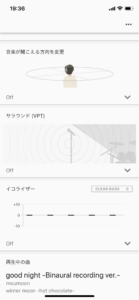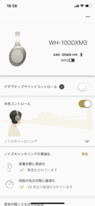 ソニーのヘッドホンアプリで接続して、ノイキャンのレベルや音の方向やサラウンドなどの設定が出来ます。